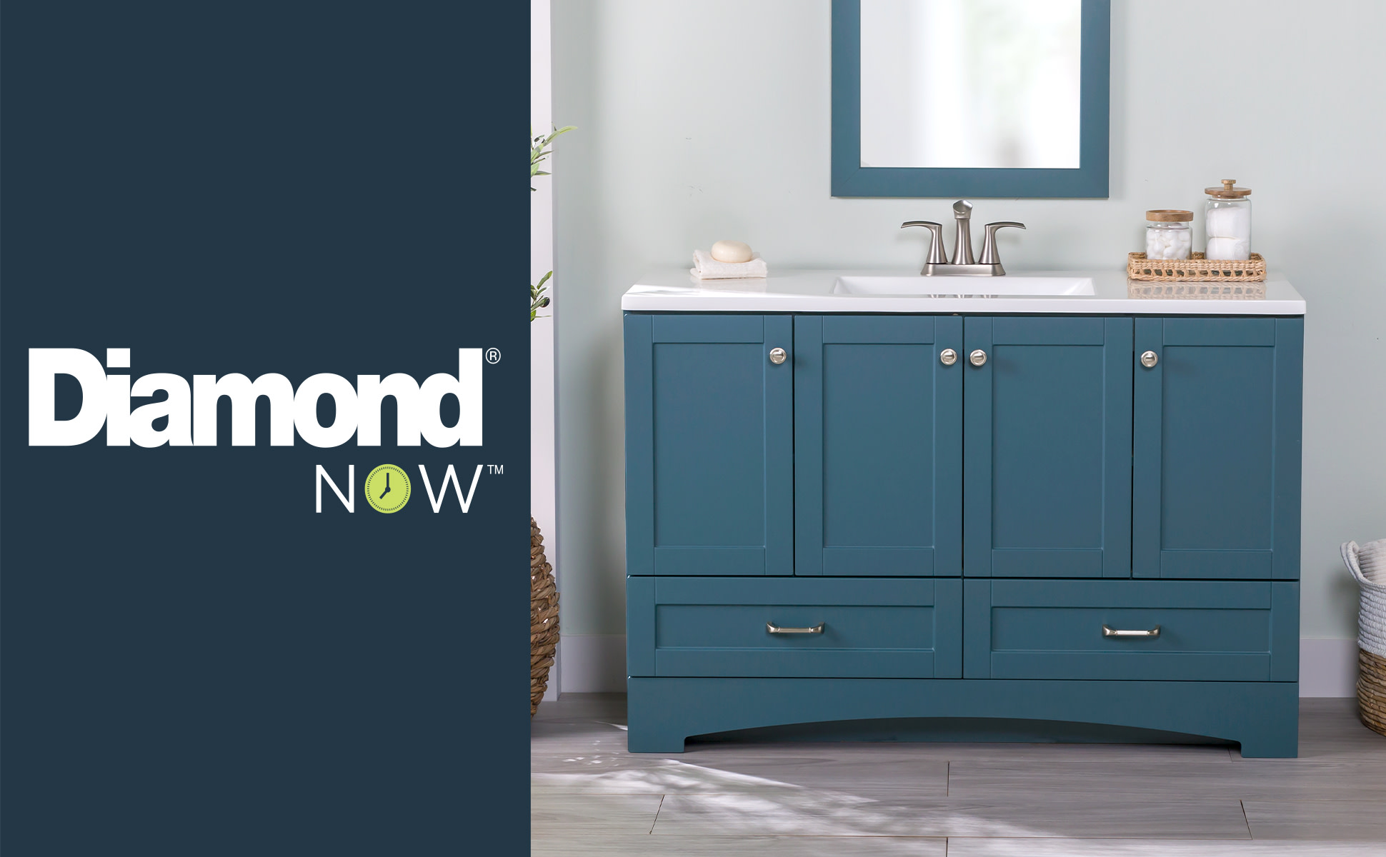 The pre-assembled bathroom cabinet includes an open back design for quick and easy installation around your plumbing.