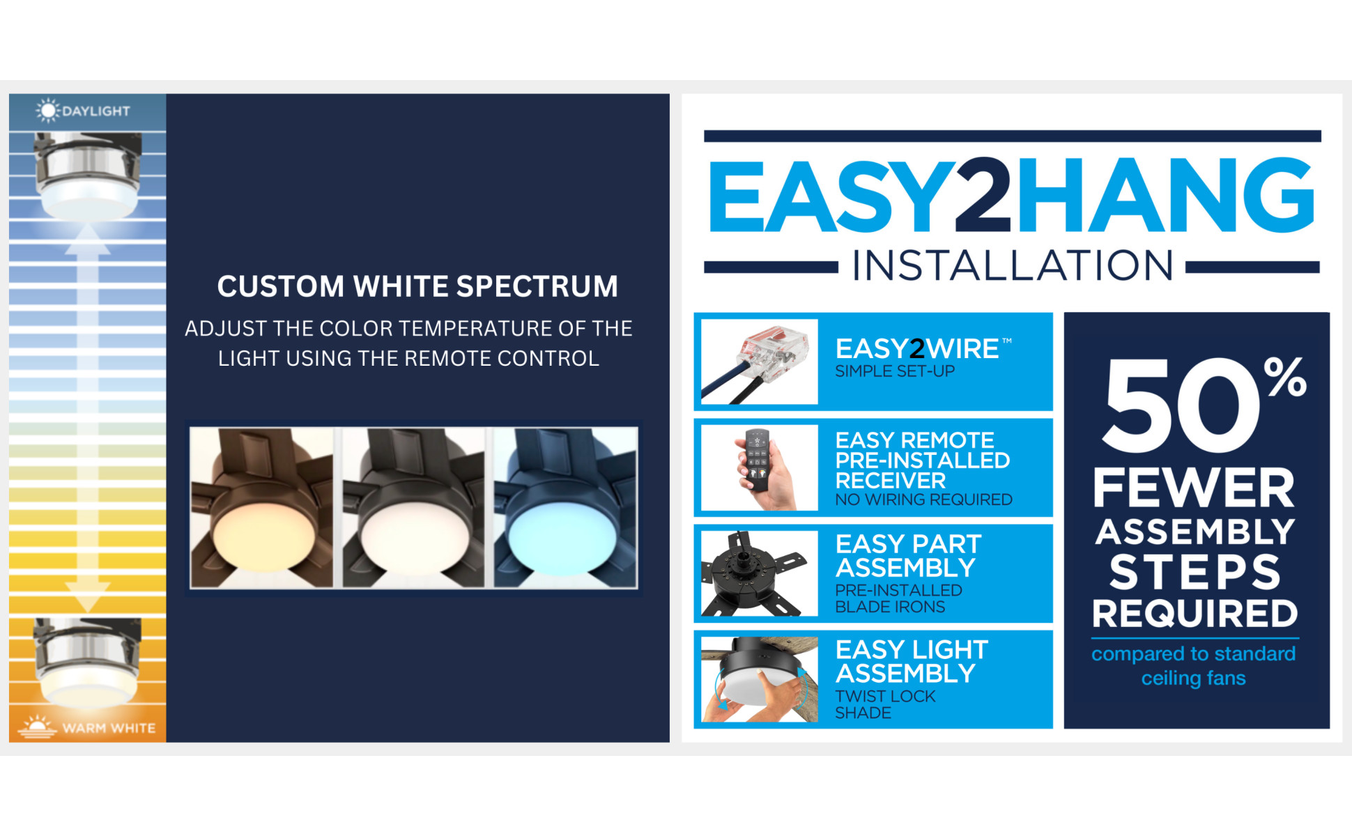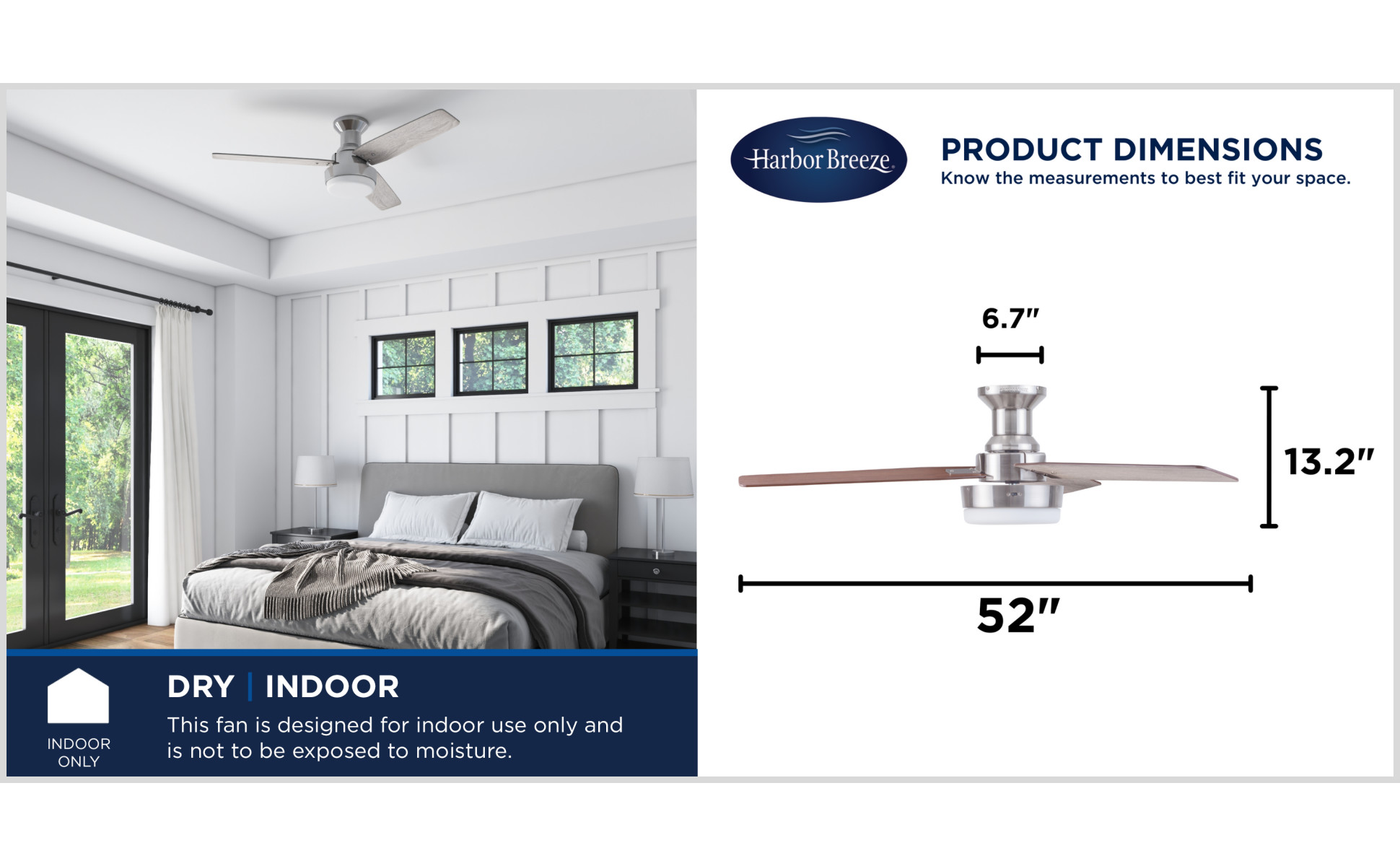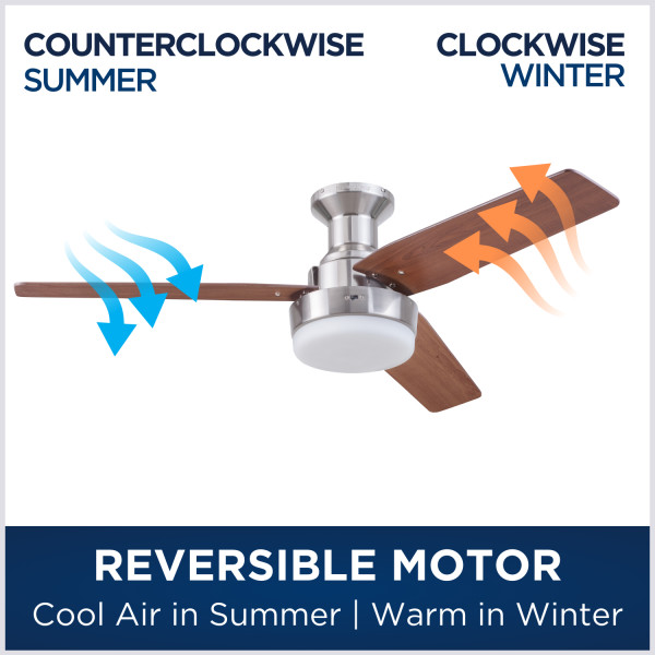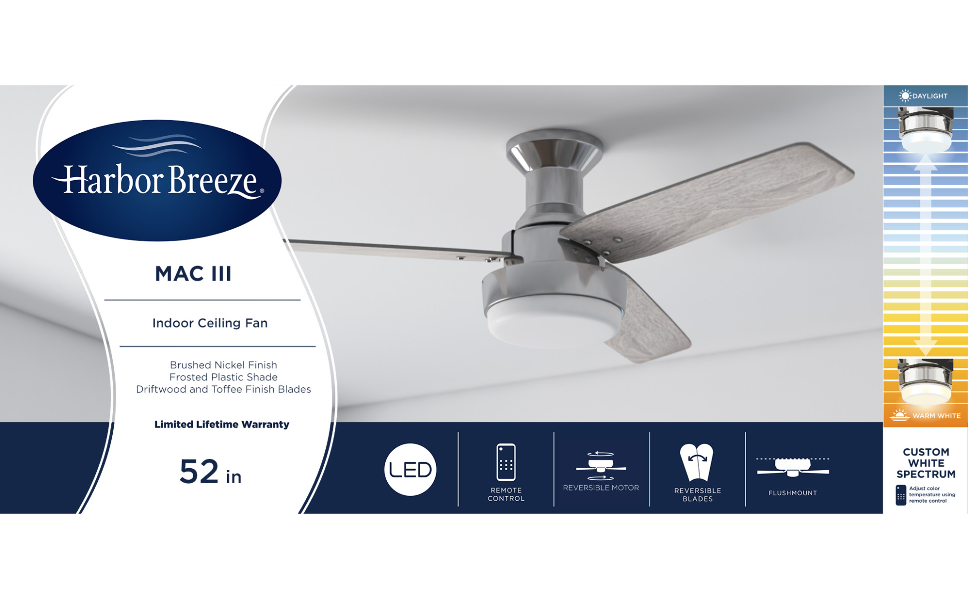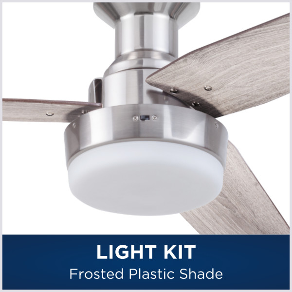 Brushed nickel finish ceiling fan from the Mac collection features 3 reversible driftwood / toffee blades so you can choose the right look for your home