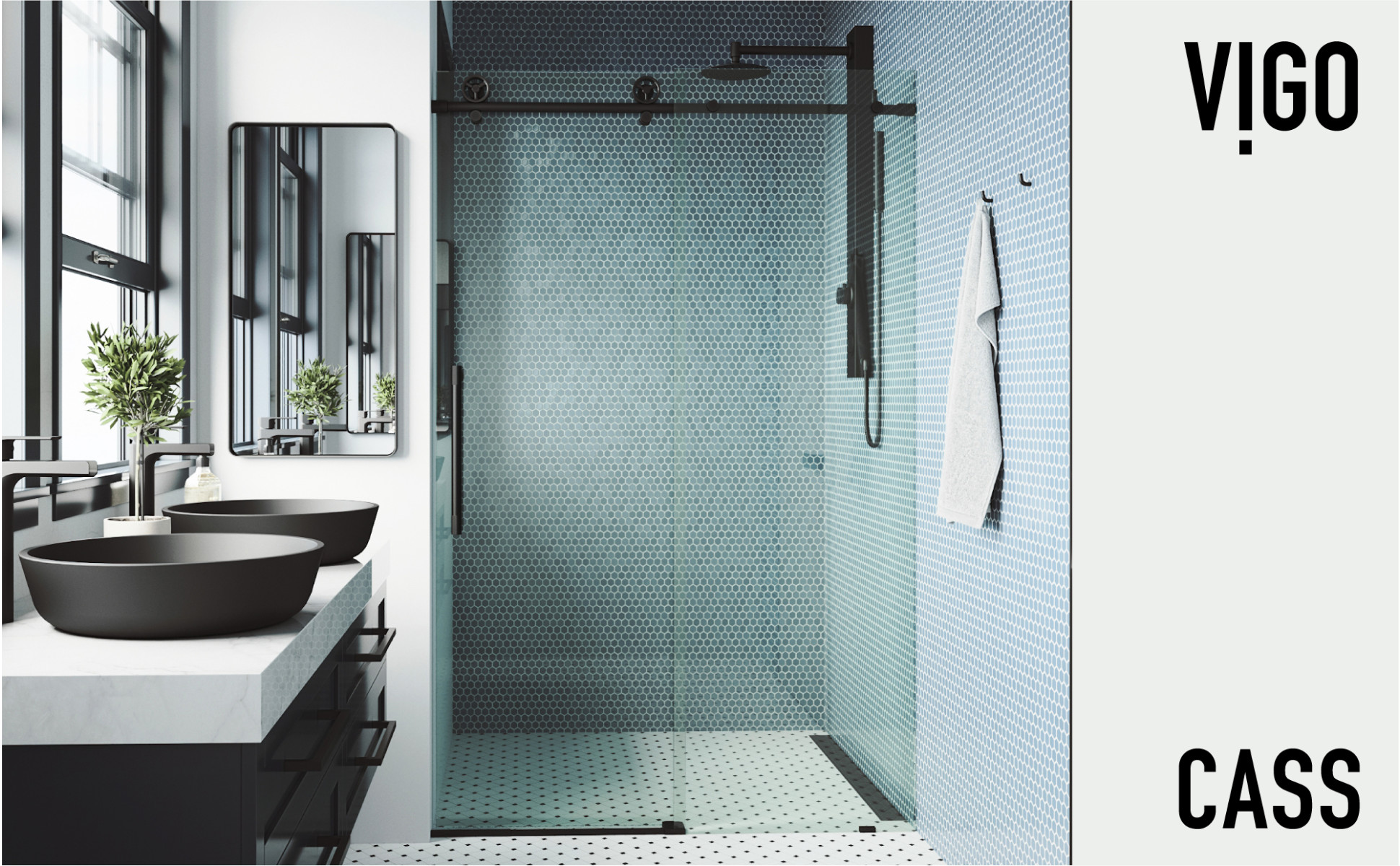 The frameless design, with a vertical handle and interior knob, adds a modern, open feel while ensuring a comfortable grip for easy operation.