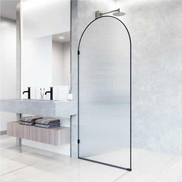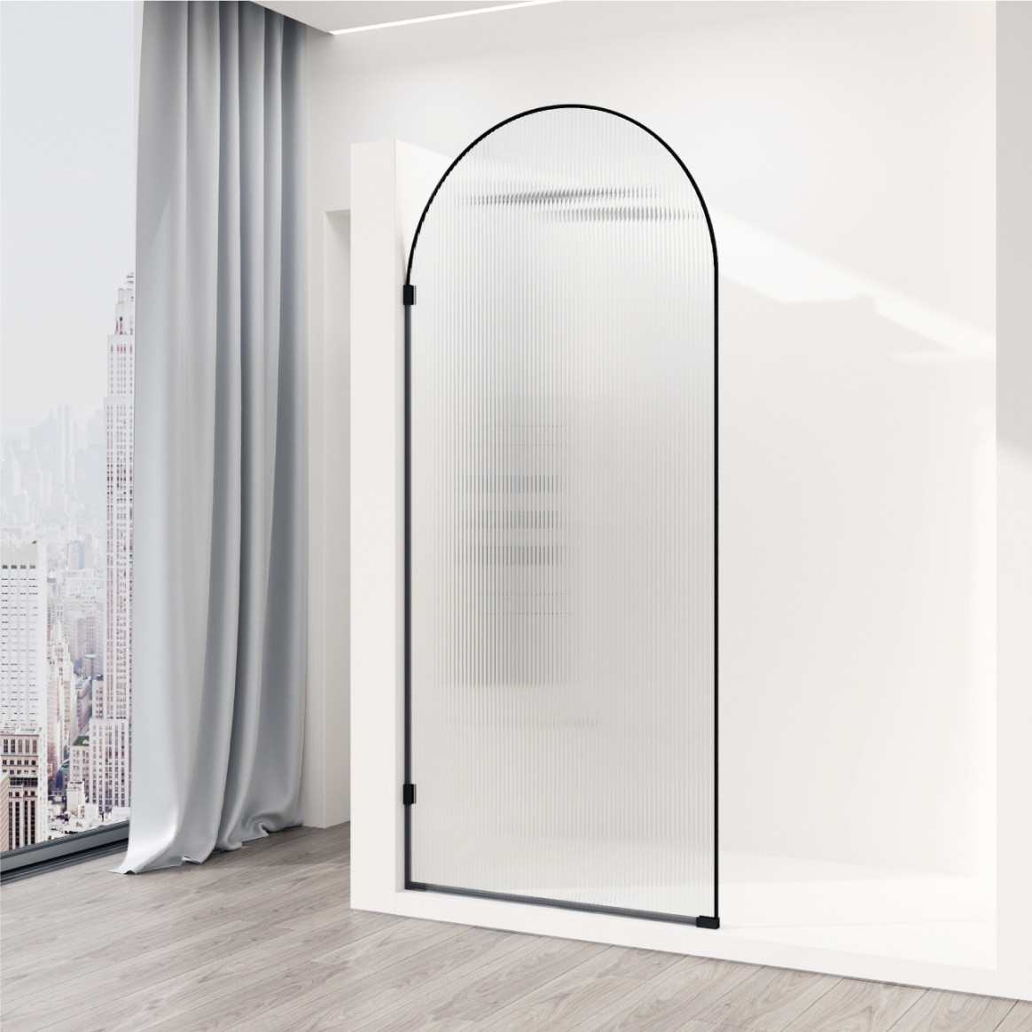 The graceful curved arc at the top adds a sophisticated touch, creating a more inviting atmosphere, making it a standout feature in any bathroom. This shower screen features a frameless design and fluted glass, providing both privacy and style.