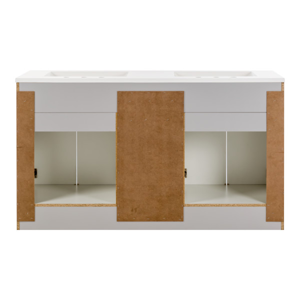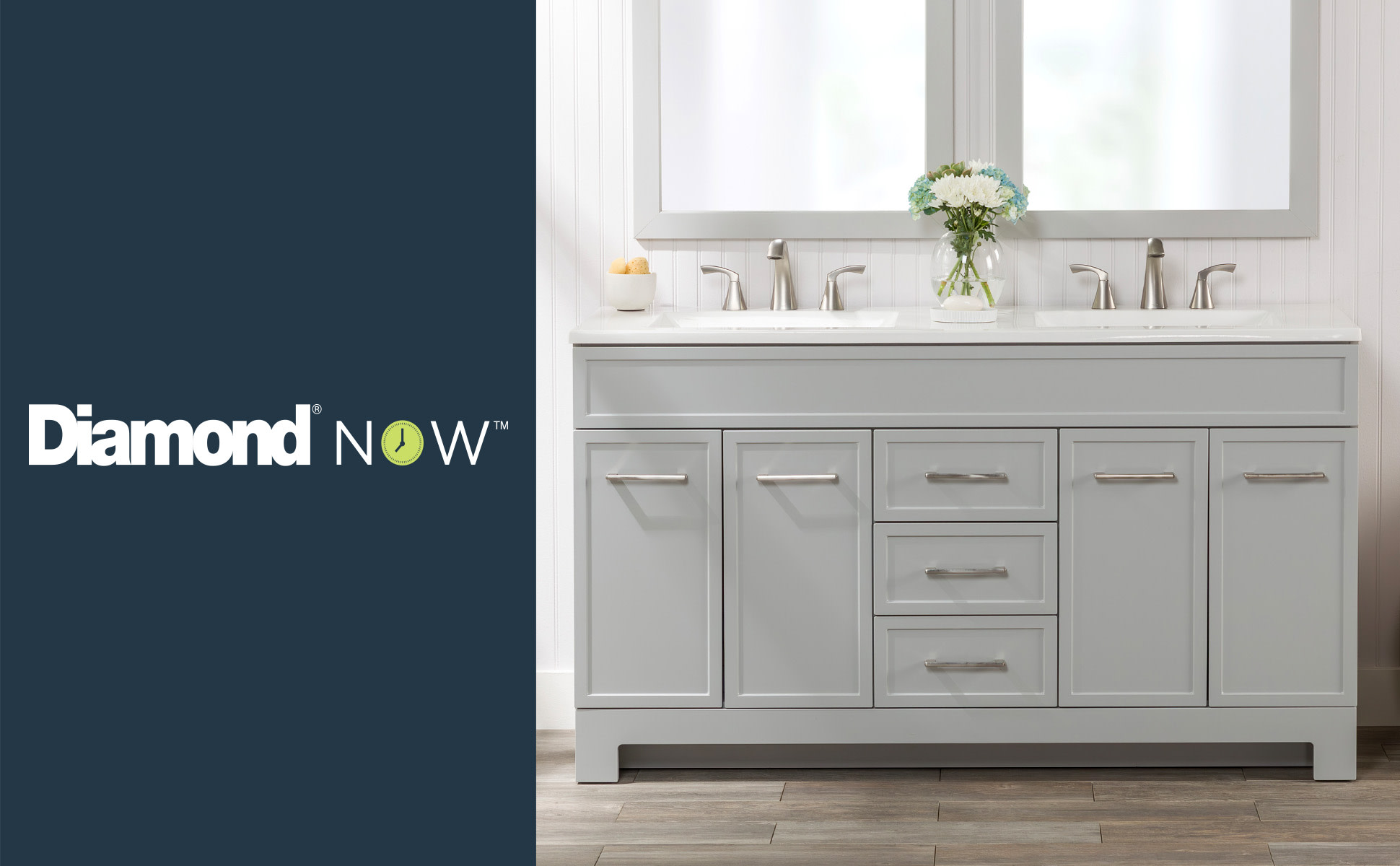 The pre-assembled bathroom cabinet includes an open back design for quick and easy installation around your plumbing.