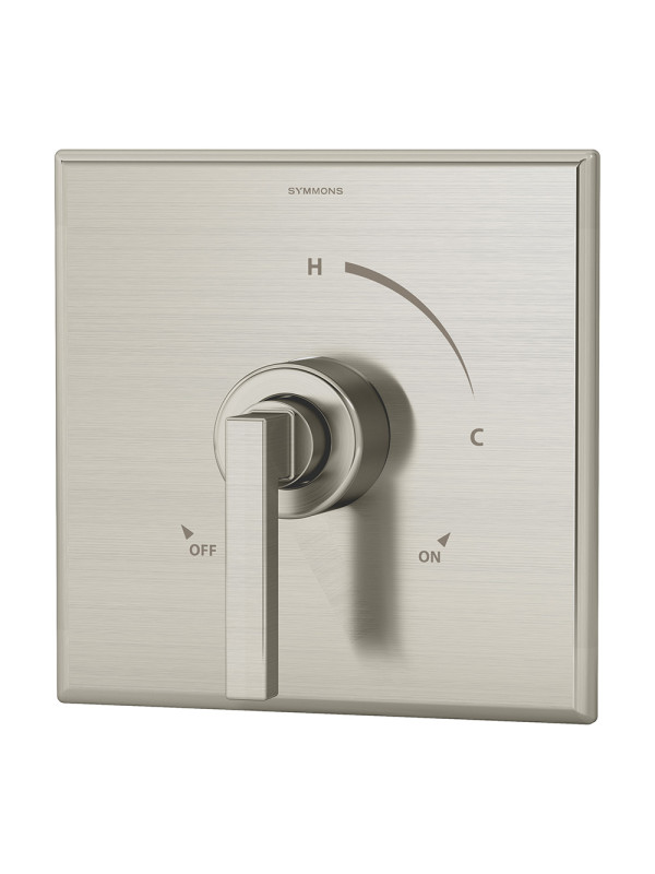 The ultra contemporary styling of this Duro Single Handle Wall Mounted Shower Trim Kit was inspired by the clean geometric shape of modern architecture. This shower trim kit includes a brass escutcheon, shower lever handle, and the necessary installation hardware. With those components, you'll be able to update your bathroom without replacing your valve. With an ADA compliant single lever handle, the brass valve cover plate features hot and cold indicators to ensure custom temperature setting and ease of use. With durable features that are crafted to last and a unique, minimalistic style, the Symmons Duro Single Handle Wall Mounted Shower Trim is a seamless and valuable addition to any modern bathroom and is backed by our limited lifetime warranty.