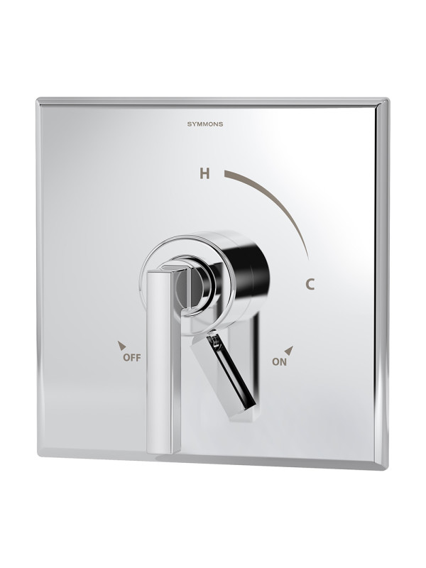 The ultra contemporary styling of this Duro Single Handle Wall Mounted Shower Trim Kit was inspired by the clean geometric shape of modern architecture. This shower trim kit is covered in a scratch resistant finish over solid metal and includes a brass escutcheon, shower lever handle, and integral volume control handle to adjust the shower water volume. The solid brass valve cover plate features hot and cold indicators to ensure custom water temperature setting and ease of use for everyone. This model includes everything you need for quick installation, allowing you to easily update your bathroom without replacing your valve. With durable features that are crafted to last and a unique, minimalistic style, the Symmons Duro Single Handle Wall Mounted Shower Trim is a seamless and valuable addition to any modern bathroom and is backed by our limited lifetime warranty.