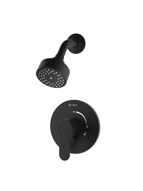 Includes shower arm and escutcheon, round showerhead, valve escutcheon, volume control, and handle