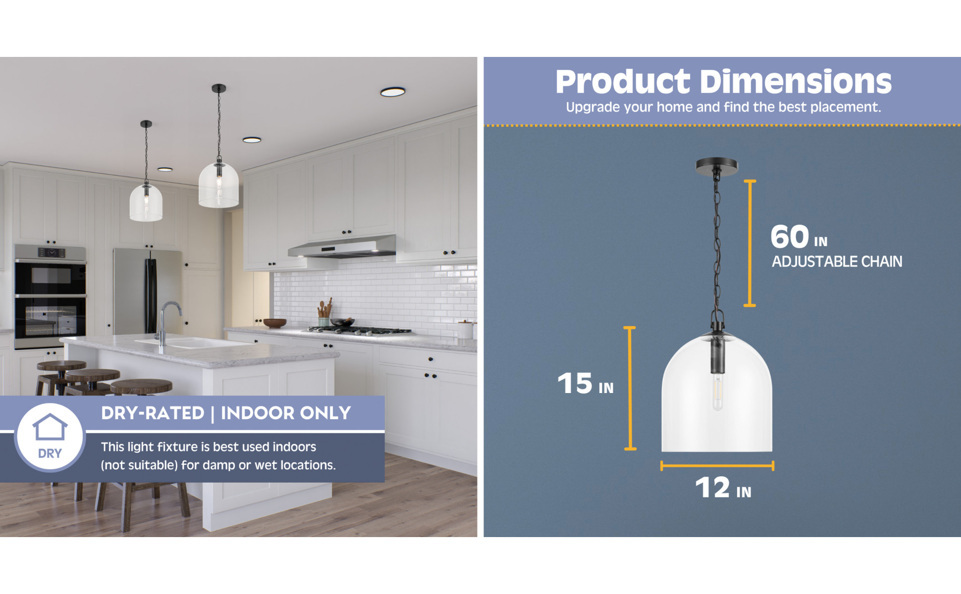 This 1-light mini pendant is great over a dining room table, kitchen island, sink, bathroom or entryway. Dry rated, not to be exposed directly to moisture.
