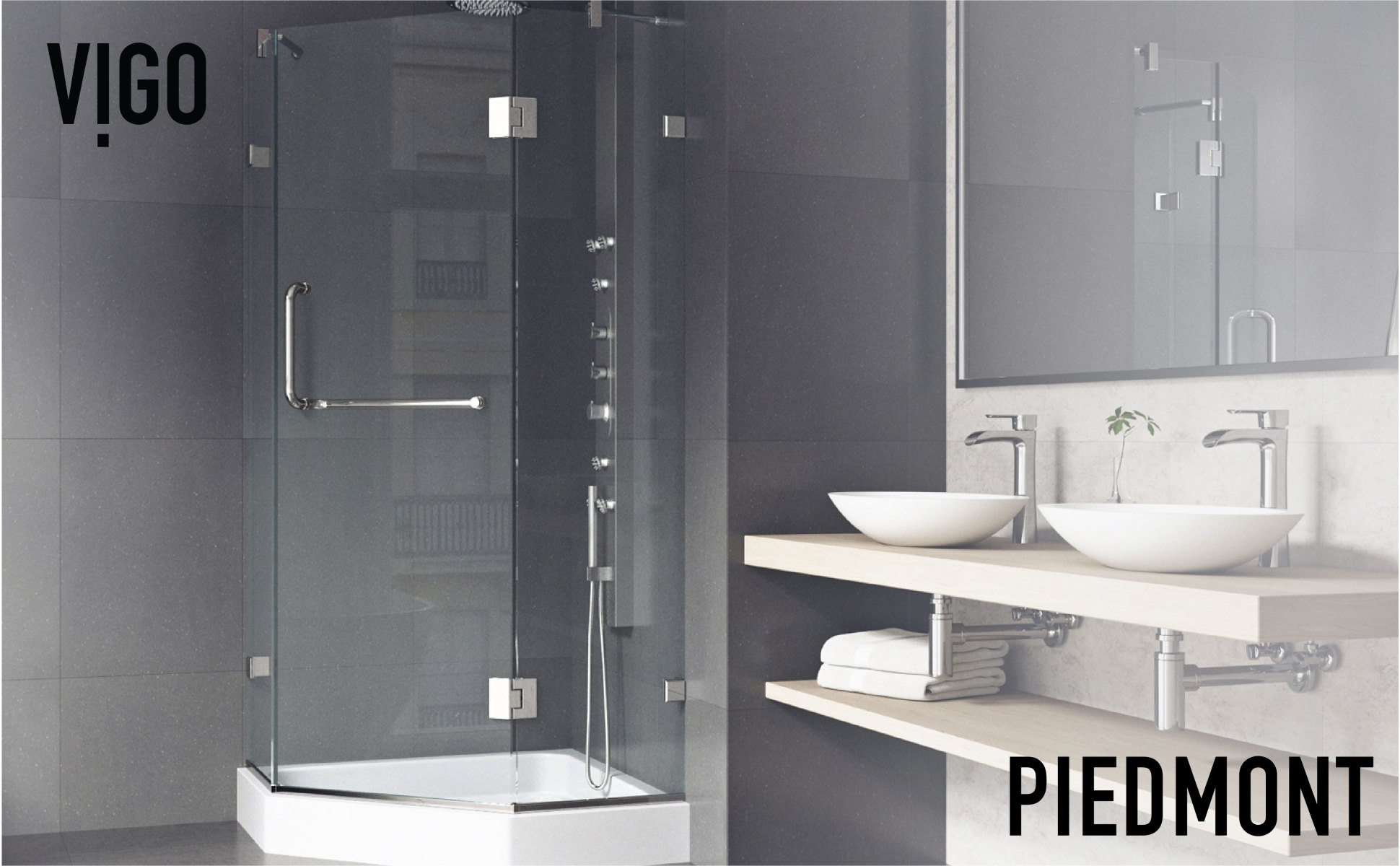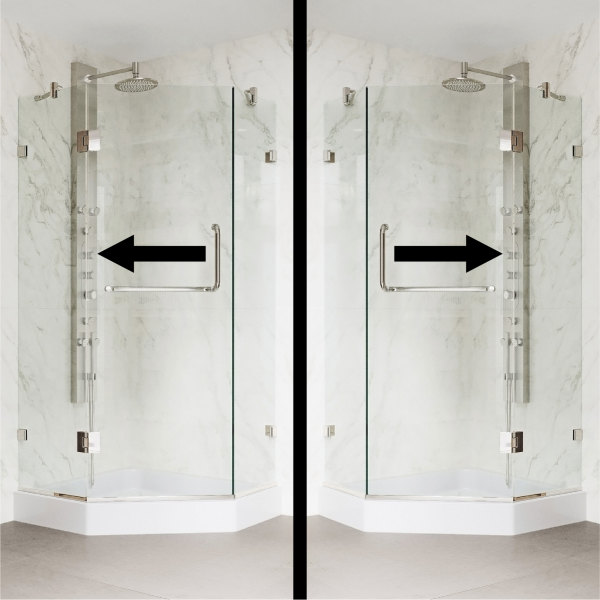 Maximize your bathroom space with the VIGO Piedmont Frameless Neo-Angle Hinged Door Shower Enclosure. Stainless steel construction and 3/8 in. tempered glass makes this shower enclosure durable for everyday use. The central entry makes for a unique feature unlike most other shower enclosures. With the option to install the door with a left or right-side opening, the Piedmont Frameless Neo-Angle Hinged Shower Enclosure is truly one of a kind. For additional convenience, try installing with the easy-to-clean white shower base, included with purchase.