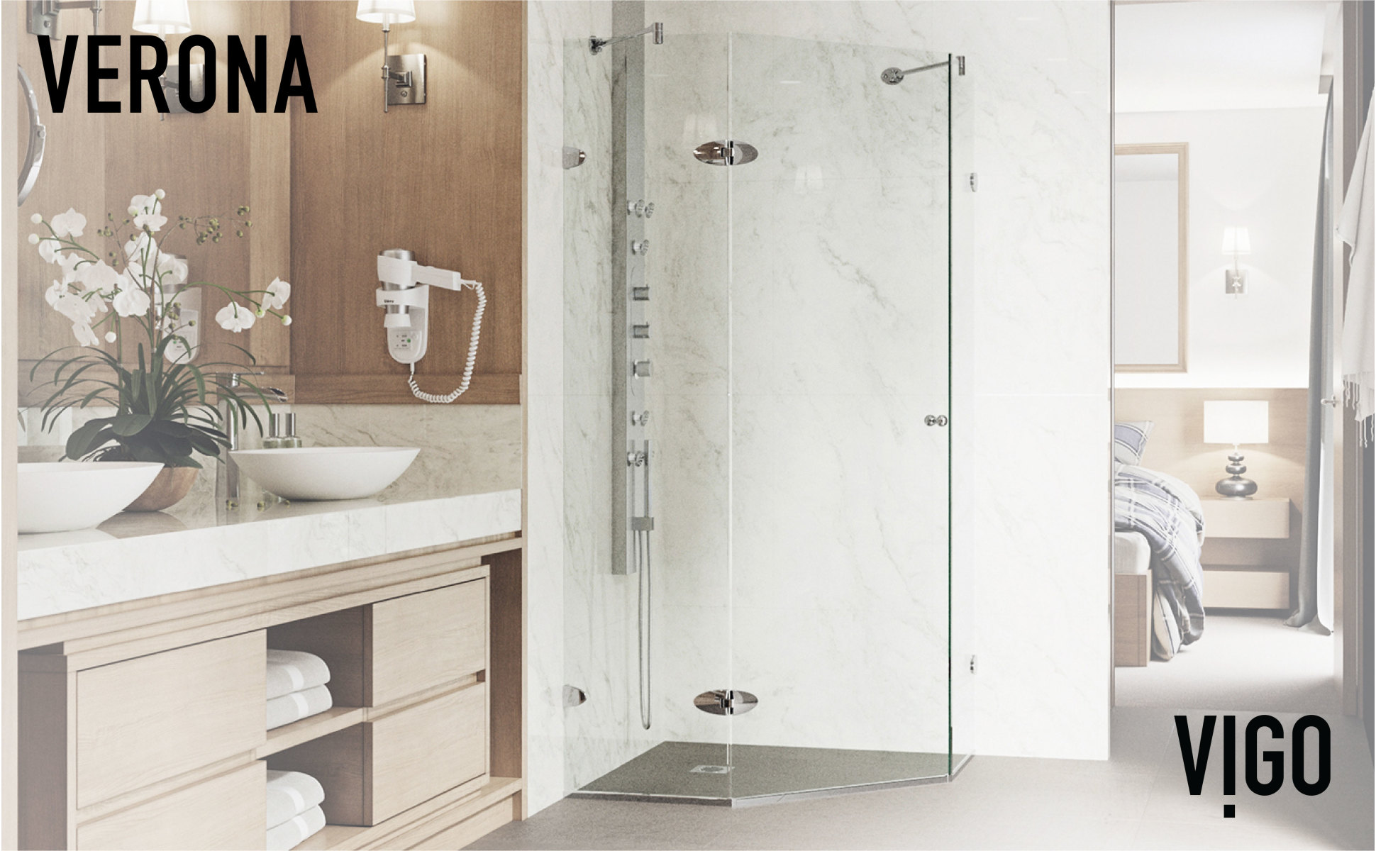The VIGO Verona Frameless Neo-Angle Shower Enclosure is a modern upgrade to any bathroom. Space-saving and dramatic, this shower enclosure features 304-series stainless steel hardware and premium tempered glass for exceptional durability. For added convenience, the Verona Neo-Angle Shower Enclosure's door can be installed with a left or right-side opening.