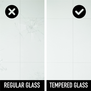 The tempered glass used is 3/8" thick and ANSI Z97.1 and 16 CFR 1201-certified.