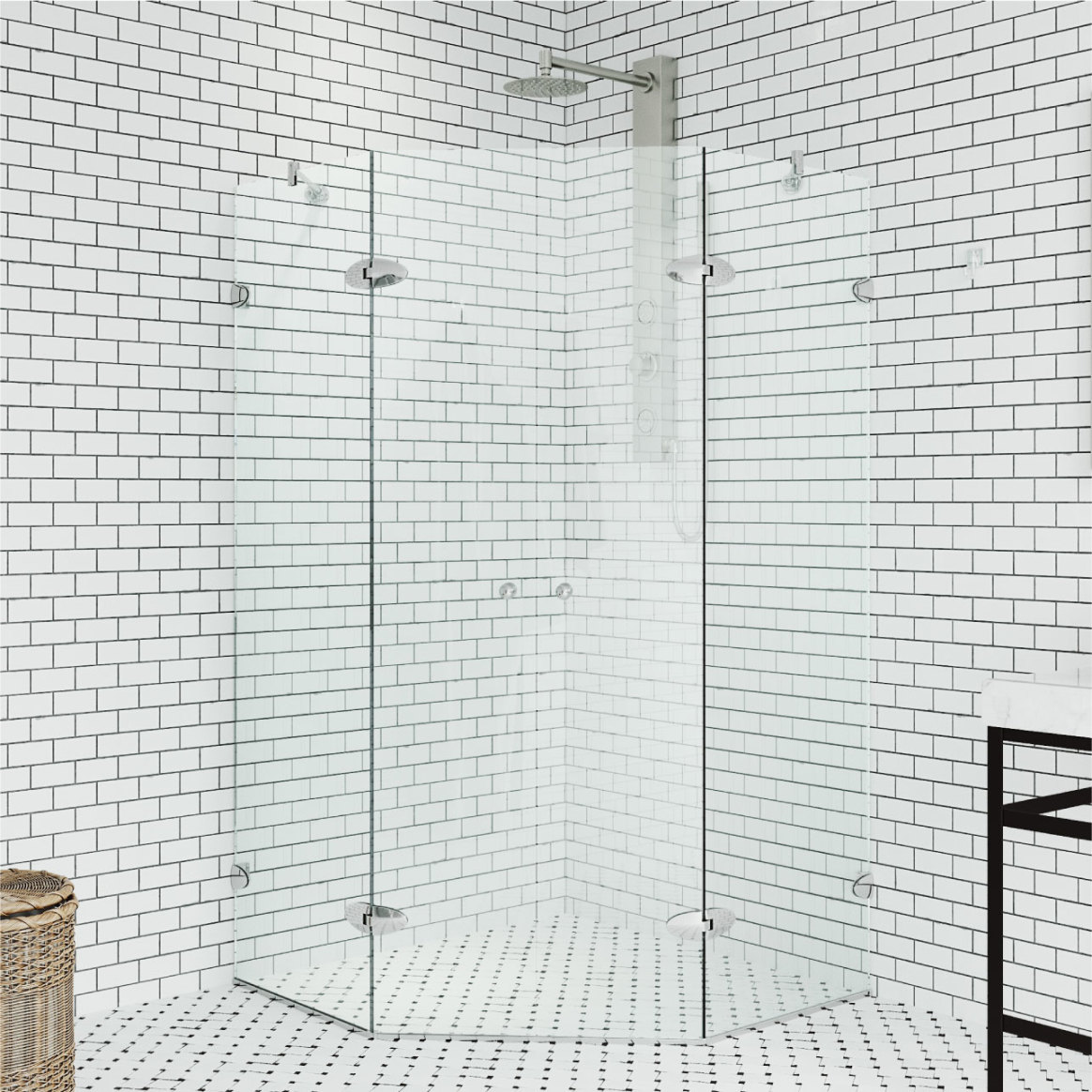 The high-quality clear tempered glass enclosure gives an urban look to your shower.