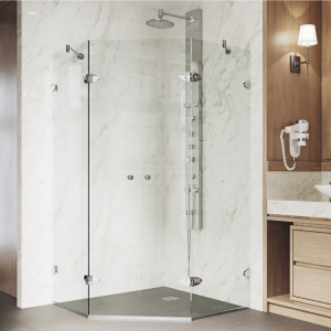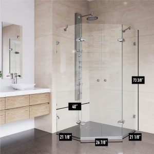 Easy access through central opening French doors makes the VIGO Gemini Frameless Neo-Angle Shower Enclosure a functional yet elegant statement piece in any modern bathroom. Stainless steel construction and 3/8 in. tempered glass ensures the shower enclosure's durability over time. With exclusive MagnaLock Technology to keep the door securely shut, this shower enclosure is sure to be a favorite for the long haul.