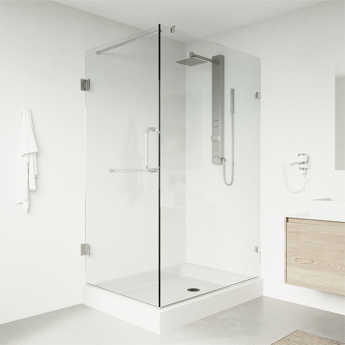 VIGO Pacifica 48.125 W x 70.75 H Frameless Hinged Shower Enclosure in Chrome with shower base and handle