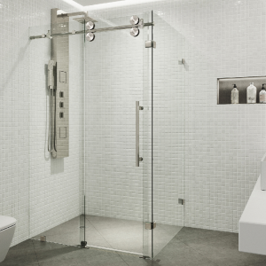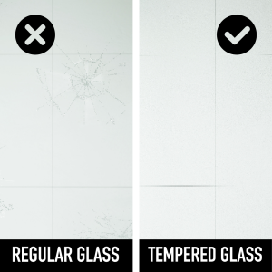 The tempered glass used is 3/8" thick and ANSI Z97.1 and 16 CFR 1201-certified.