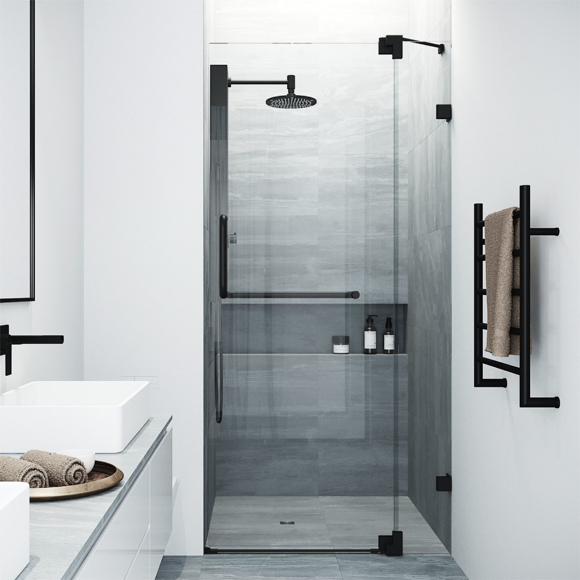 VIGO Pirouette Frameless Pivot Shower Door with Clear Glass and Handle