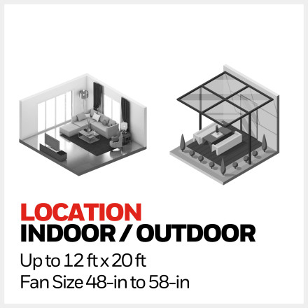 Can be hung in covered outdoor spaces like porches, garages, and patios in addition to typical indoor spaces like living rooms or bedrooms.