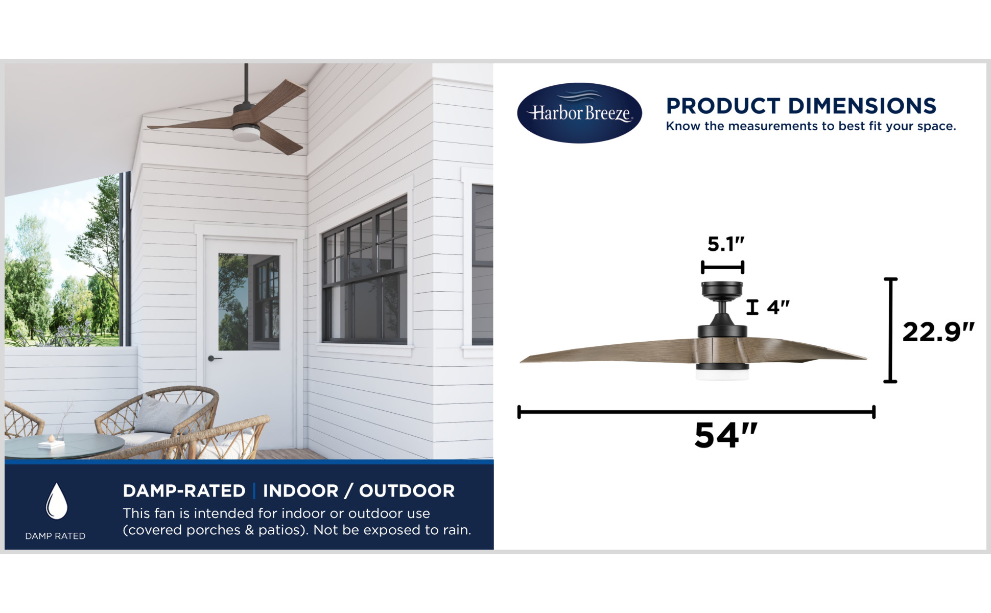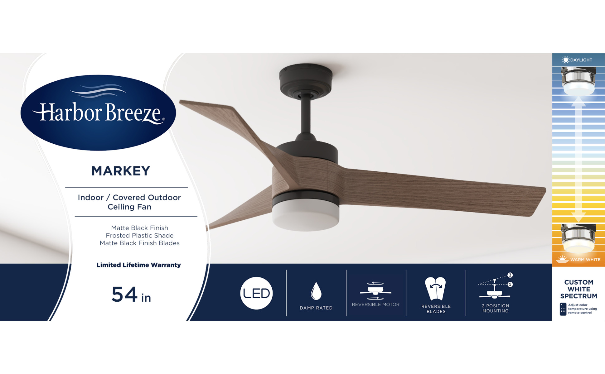 Remote control included for easy adjustments to the speed settings and light output