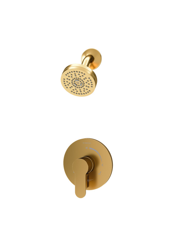 Kit comprises of a shower arm, escutcheon, round showerhead, valve escutcheon, volume control, and handle