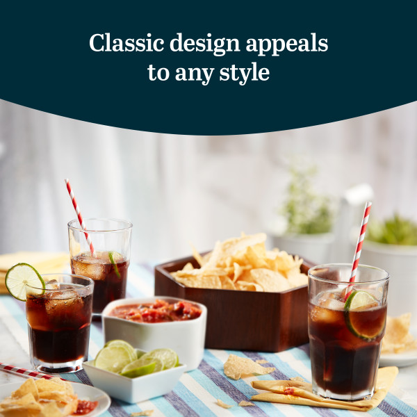 Libbey Boston Tumbler, Juice, and Bar Rocks Glasses Set: Upgrade your kitchen with our stylish and versatile, 18-piece Libbey drinking glasses set. This classic glass tumbler set includes 6 cooler glasses (16 oz), 6 rocks glasses (12.5 oz), and 6 juice glasses (9.8 oz). These beverage glasses are the perfect size for every beverage, whether it’s a refreshing iced tea, a classic cocktail, or a morning glass of orange juice. Crafted from premium quality glass, these water glasses feature a timeless design that blends seamlessly with any table setting. The heavy base on each juice glass of our heavy duty glasses ensures stability, helping to prevent spills and tipping, while the sleek, understated silhouette adds a touch of elegance to casual meals or gatherings. This set of stackable glasses is as practical as it is stylish. Each glass of this clear drinking glasses set is stackable, making storage simple and efficient, even in smaller kitchens. Built for convenience, these cocktail glasses are dishwasher safe, allowing for quick and easy cleanup without compromising their charm or durability. Perfect for dinners, entertaining guests, or simply enjoying a drink at home, these dining glasses are an indispensable addition to any glassware collection.