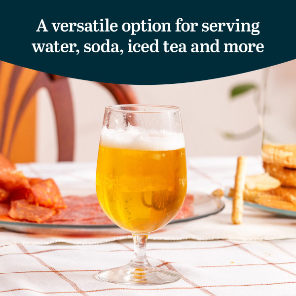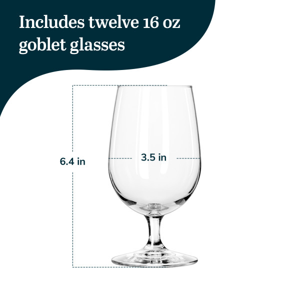 Libbey Vina Goblet Glass Set of 12: Our short stemmed cocktail glasses are the perfect blend of artistry, functionality and casual grace from casual dinners to formal gatherings! Enhance your drinkware collection, with this set of 12 modern, clear, drinking glasses with stem designed for both style and practicality. Crafted with a restaurant quality premium glass and a U-shaped deep curved goblet shape, these water drinking glasses set of 12 not only showcase water, soda, ice tea, and more with a touch of class but also add flair to your tabletop presentations. The 16-ounce capacity of these clear water glasses features a balanced design with short stem and a wide base. The minimal bead style of this clear drinking glasses set of 12 adds a touch of elegance and makes them easy to carry without the worry of spills or breakage. Be it casual entertaining or special occasions, these stemmed fancy water glasses are perfect for any occasion. Cleaning up your water goblets set of 12 is a breeze as they are totally dishwasher-safe. With proper care, these durable water glasses set of 12 will remain a staple in your glassware collection for years to come.