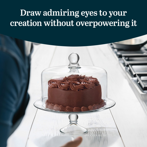 Libbey Selene Glass Cupcake Stand: These birthday cake stands are designed to elevate your desserts to new heights, making them the star of any occasion. With its elegant glass construction and versatile features, these wedding cake stands are a must-have for every baking enthusiast. Crafted from high-quality glass, this pedestal cake stand exudes sophistication and durability. The transparent design of the cake stand for wedding allows your treats to take center stage, captivating your guests with their irresistible allure. Whether you're hosting a birthday party, wedding reception, or any special event, this stand for cake will add a touch of elegance to your table setting.This cake stand with lid not only protects your creations from dust and debris but also creates a stunning presentation. The clear cake cover dome allows your guests to admire your baked goods while keeping them fresh and moist for longer. Measuring at a generous size, this large cake stand provides ample space for all your confections.The spacious design ensures that your desserts are beautifully showcased, enticing your guests to indulge in a slice or two. Elevate your dessert table to new heights with this cake holder with cover.In addition to its aesthetic appeal, this cake stand is also a practical choice. The glass cake plate stand is easy to clean, ensuring that your cake stand always looks pristine. Simply hand wash with mild soap and water, and it will be ready for your next baking adventure.