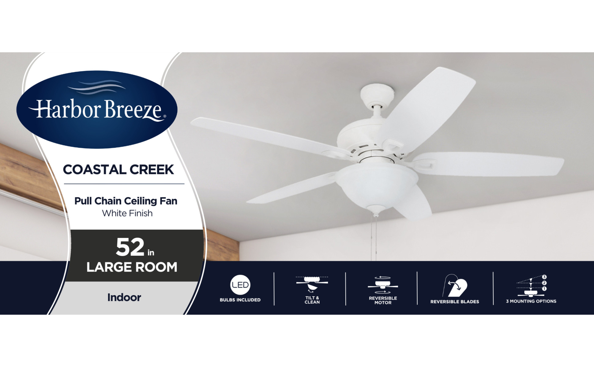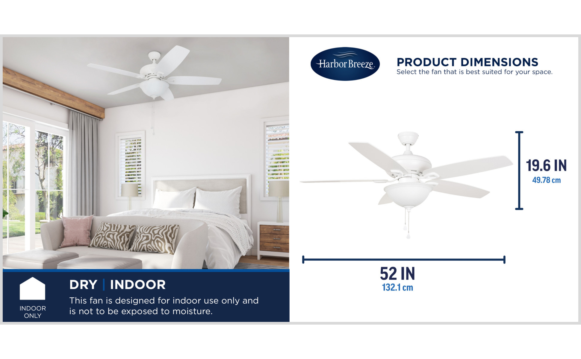 52-in fan provides airflow up to 3116 CFM, making it ideal for large rooms up to 400 sq ft