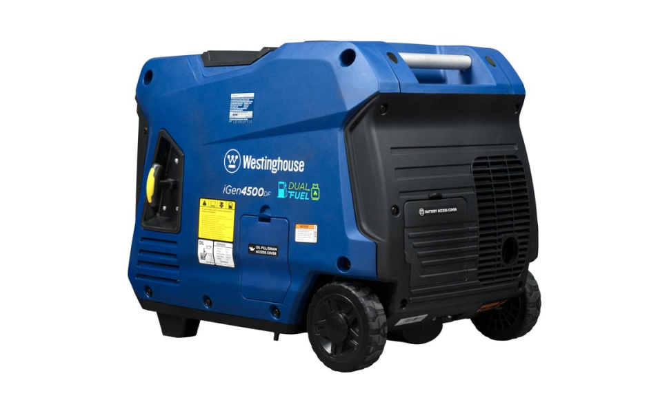 The Westinghouse iGen4500DF Dual Fuel Inverter Generator is a premium power solution to meet your portable power needs whether you're camping or on the go. With a TT-30R RV Ready Outlet, two 20A household outlets, and built-in USB ports, this generator is ideal for recreational activities or as an emergency backup source. It's engineered for maximum fuel efficiency with variable engine speed to produce only the power you need at any given time, running up to 18 hours on a 3.4-gallon gas tank. As a dual fuel generator, the iGen4500DF operates on gasoline or propane for versatility wherever you are. Conveniently built with Push-Button Electric Start and wireless remote start for easy ignition and has an LED Data Center with an automatic rotating digital display to keep you up to date with real-time information. At less than 3% THD, the iGen4500DF is perfect for running sensitive electronics like LCD/plasma televisions, laptops, tablets, or mobile devices that require clean, stable power. It features a lightweight, compact design with wheels and an extendable suitcase-style handle, making this model effortlessly more portable than traditional generators. The iGen4500DF is ensured by a 3-year limited warranty from a nationwide service network and lifetime technical support.