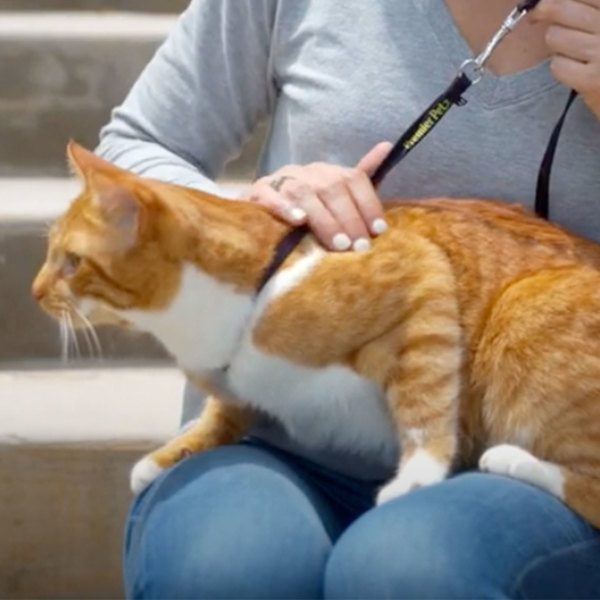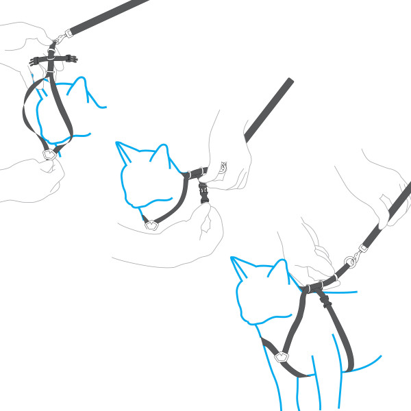 The patented design cradles your cat without putting pressure on the throat area. Create a custom fit by tightening down the adjustable straps until it fits snug around him/her and attach the cat leash that comes with your harness. You can safely explore the world outside with your cat.