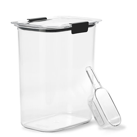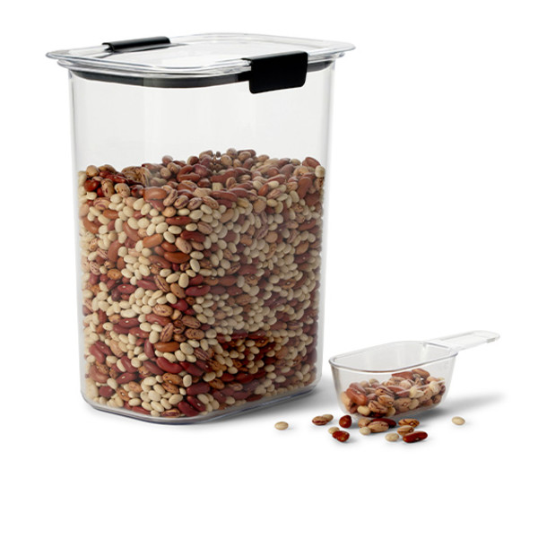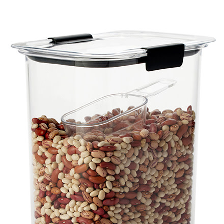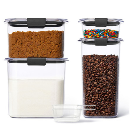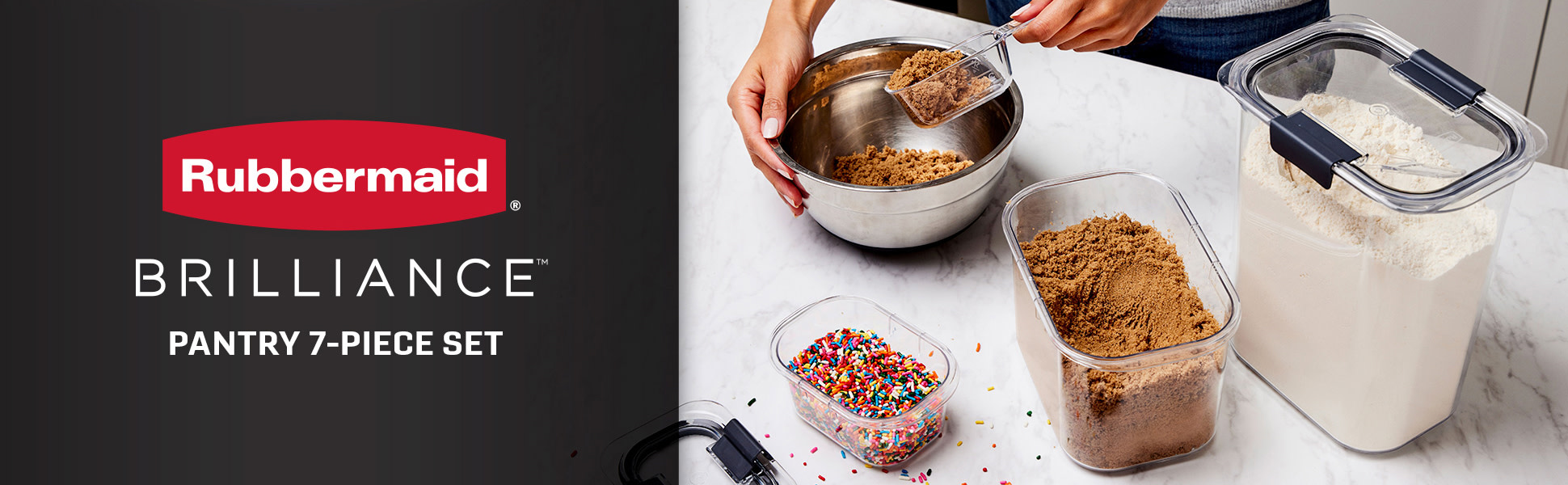 Keep your kitchen organized with Rubbermaid Brilliance Pantry Food Storage Containers. The BPA-free, shatter-resistant plastic containers have latched lids that form an airtight seal to keep food fresh. This collection of pantry storage containers come with a variety of sizes for holding different ingredients, plus 1/2-cup scoops for convenient measuring. Stackable and space efficient, they blend seamlessly into organized cabinets and are beautiful enough to display them on the counter for quick access.