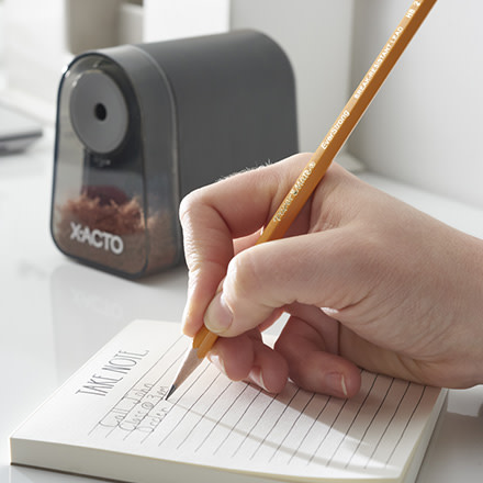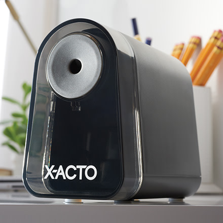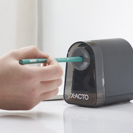 Avoid broken leads so you can focus on writing with the break-resistant X-ACTO Mighty Mite electric pencil sharpener. Its Pencil Saver® feature prevents over-sharpening, so leads are sharpened to their ideal length for less breakage. The Mighty Mite works great with woodcase pencils, including colored pencils. Finally, the SafeStart® Motor stops when the easy-to-empty shavings bin is removed. With less lead breakage and less frustrations, it’s no wonder X-ACTO is the #1 electric pencil sharpener brand!+.