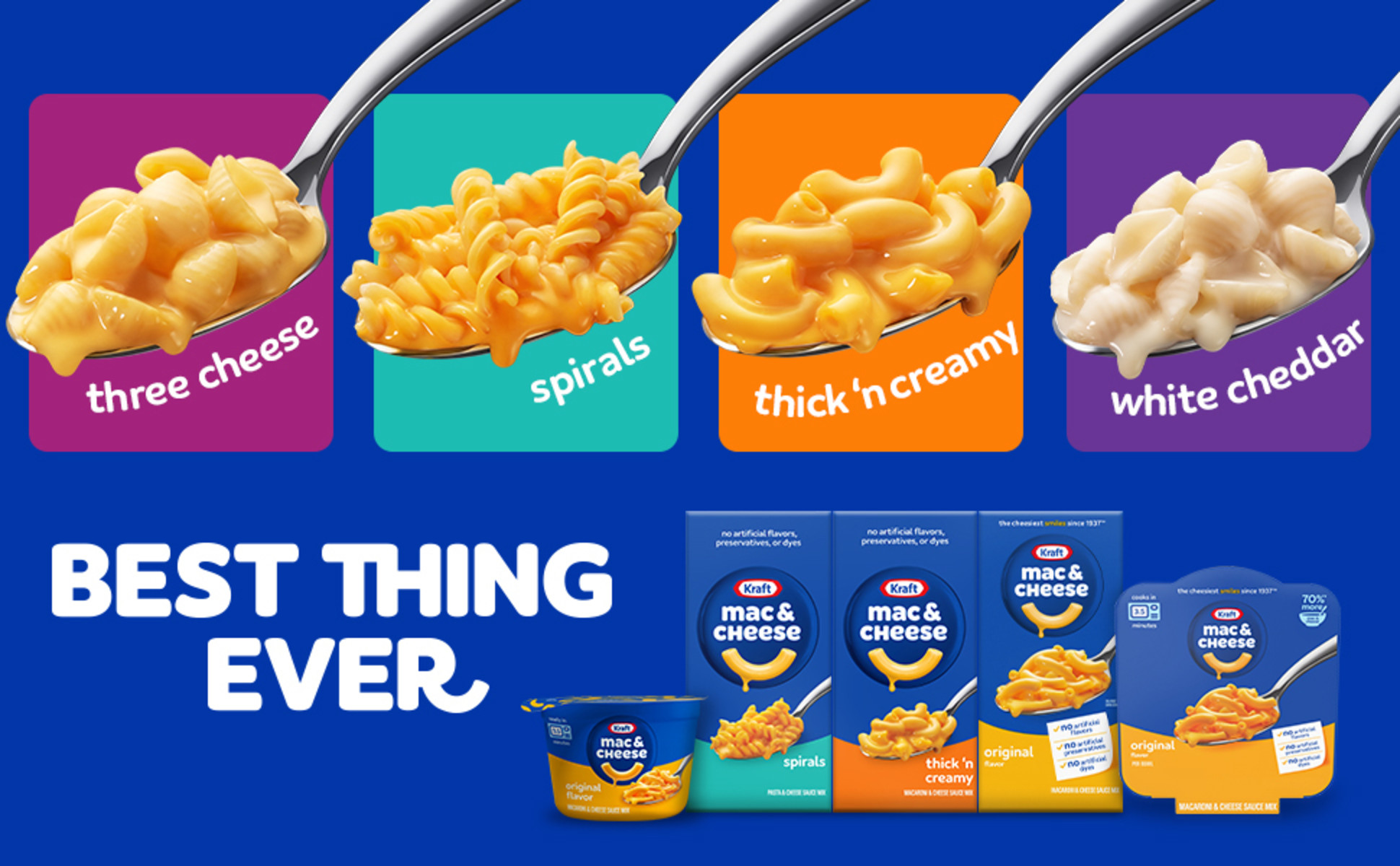 Made with no artificial flavors, preservatives or dyes, our mac and cheese fills your belly and feeds your soul. No matter the noodle shape, we will always deliver the cheesy and delicious taste you know and love.
