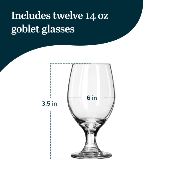 Libbey Goblet Party Wine Glasses: Add a touch of contemporary elegance to your table with our Perception pretty wine glasses collection. Defined by elongated lines and a curving silhouette, this tulip wine glasses reimagines traditional wine glasses and tumblers with modern flair. The Perception clear goblets line includes wine glasses, coupes, cordials, goblets, and tumblers—offering a cohesive look with wine options to complete your beverage service and bar tabletop presentation.This drinking goblets set includes twelve 14-ounce banquet wine goblet glasses (3.38" diameter x 6.5" height), perfect for water, cocktail, or wine and more. Our goblet stem glasses are crafted from premium-quality glass and designed with durable walls, a beaded rim, and a sturdy foot for long-lasting use. The curvaceous red wine glasses pair beautifully with other pieces from the Perception range to complete your beverage service. Each goblet glass for wine is safely packed. Always hand wash these durable wine glasses before and after use.
