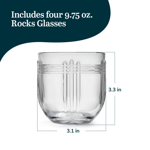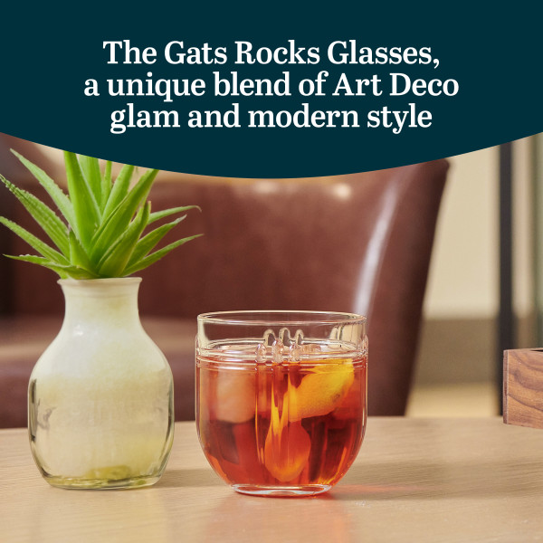 Libbey The Gats Rocks Glass Set of 4: Harken back to an earlier time to embrace retro craft cocktail trends with our with our heavy duty drinking glasses set. This set of drinking glasses contains 4 9.75 ounce rocks glasses, designed to complement any occasion. Crafted from high quality these heavy rocks glasses feature a cut glass look with a blend of Art Deco Glam and modern style that is perfect for both casual and formal gatherings. The Art Deco inspire design of our cocktail glass set elevating mixed drinks and spirits. These water drinking glasses feature curving forms and smooth polished surfaces evoke the electrifying feel of the Roaring Twenties in New York, that allows you to savor your favorite beverages in style. Enjoy your retro-inspired cocktails with our short drinking glasses and elevate every sip. Our heavy drinking glasses are durable ensuring you can preserve them for a long time. Plus, these dishwasher safe whiskey glasses for drinking make cleanup quick and easy, giving you more time to enjoy your drinks. Seamlessly transition from casual meals to sophisticated evenings with our mixed drink glasses or enhance your glass collection. These fancy drinking glasses are perfect for cocktail parties, bar, events, home, business offering versatility and elegance to any home.